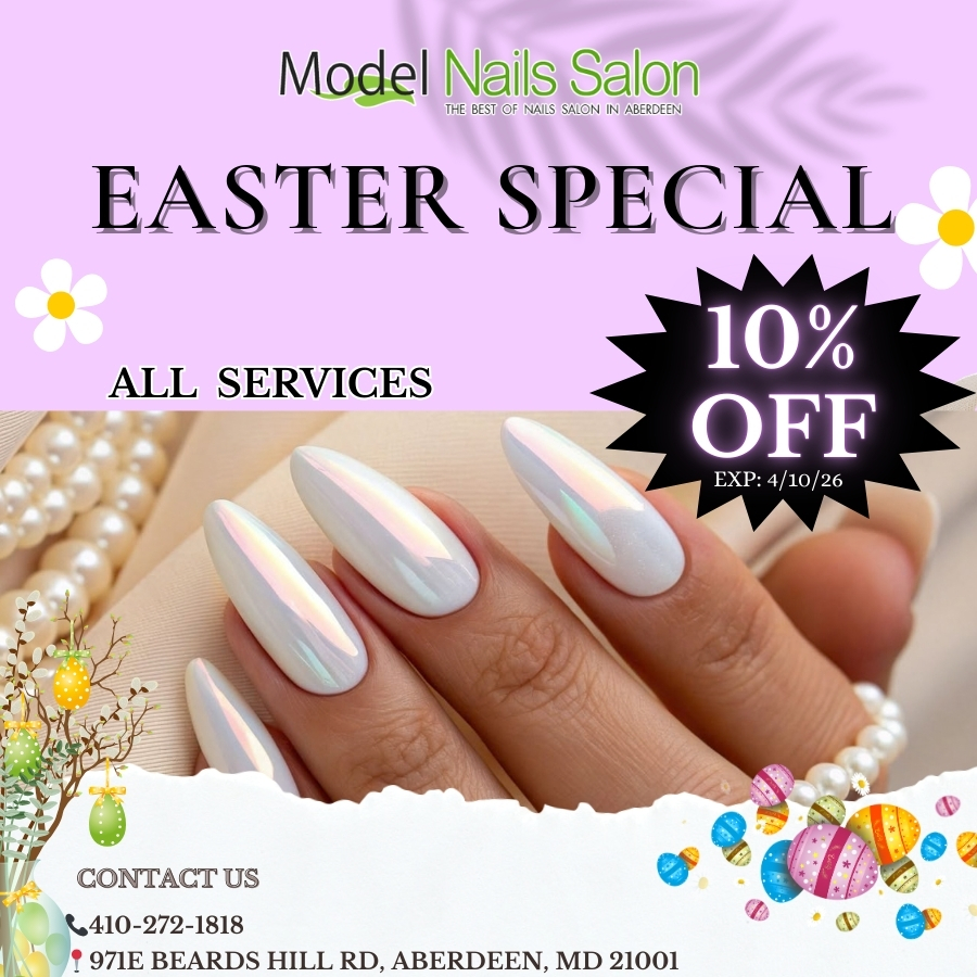 Discover Model Nails Salon in Aberdeen, MD 21001 – located in a clean shopping center, offering natural nail care with premium Nuskin products. Enjoy healthy, beautiful nails in a relaxing environment near Sprite Supermarket, banks, and top restaurants.